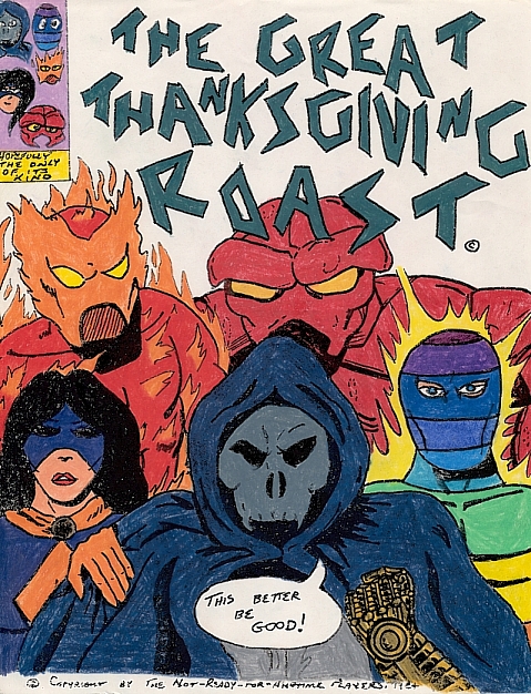 In 1984 I made Muskateer a handdrawn birthday card. It was three pages long with nine panels per page. The artwork was just a tad above stick figures and I called it: "This is a Birthday Card?". On the card the various NPC characters from the current D&D game I was running (Victor the Third) more or less roasted Muskateer like they used to do on TV. They told jokes and made put downs.